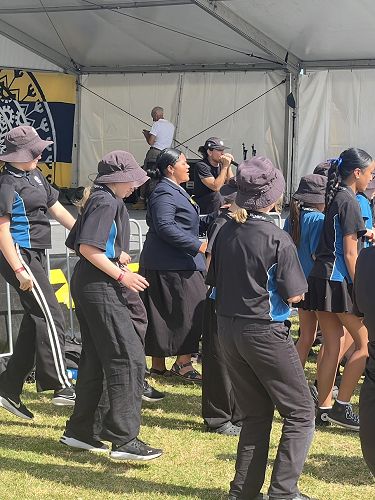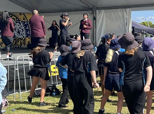 A group of senior students, along with Whaea Alicia and Mrs Anderson-McGhie, travelled to Manukau last week to take part in a special session at ASB Polyfest designed for primary and intermediate aged students.