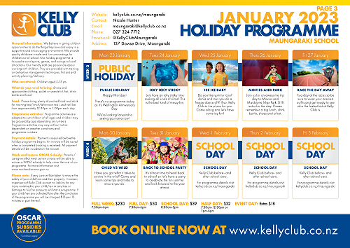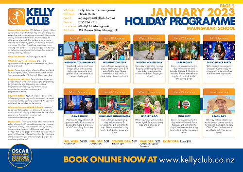 Bookings are now open on our website : www.kellyclub.co.nz/maungaraki