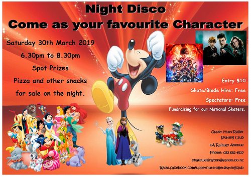 Night Disco on Saturday 30th March. Come as your favourite character. See the attached poster for more details.