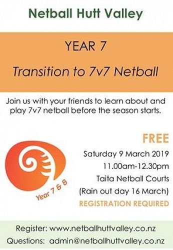 All Year 7 Netballers moving from 6 aside to 7 aside netball are invited to a free session this weekend. See the attached flyer for more details.