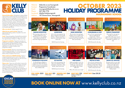 The Kelly Club Holiday Programme is now taking bookings. See the attached flyer for details.