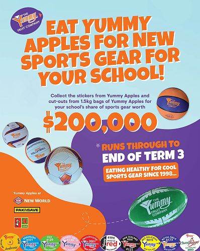 The Yummy School Sticker Promo on again this year. Collect stickers and hand them in to the office. Our fabulous home and school team send these in and we are able to get free sports gear.