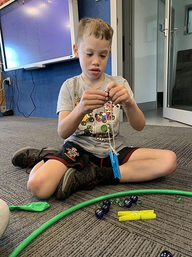 Kākano also took part in a Science in motion, Gravity and friction activity. We had to work out how many different ways we could move the marble in a hula hoop.