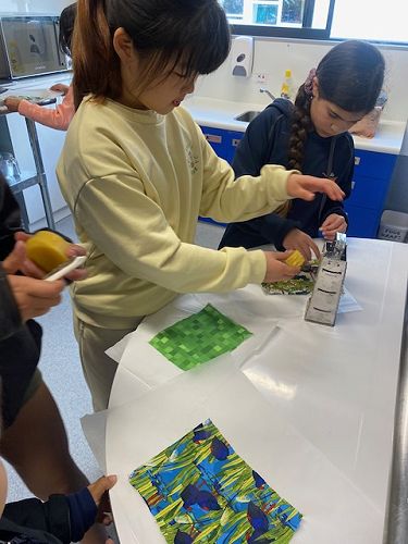This week the Enviro group made beeswax wraps in the Waihanga Centre. We grated a beeswax, resin and jojoba oil mix onto cotton material. We carefully melted the wax between baking paper. Once the wax was melted, it stuck to the fabric, making a wrap that we can use again and again instead of gladwrap. Beeswax wraps are great for using anytime you would use plastic wrap - on the top of a bowl, a dish or to wrap loose food. They are easy to clean using water, or a splash of dishwashing liquid. The best part is that they smell like honey!