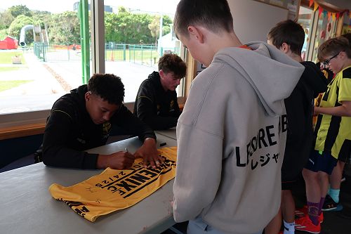 On Friday, Maungaraki School was lucky enough to host a very special visit from the Wellington Phoenix football team! Our Sports Leaders and the Year 5/6 Maungaraki football team were beyond excited to meet some of the professionals and have the chance to ask them all sorts of questions.