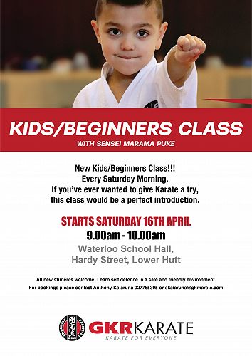 A new kids beginners Karate class is starting up at Waterloo Hall on a Saturday morning. See the attached flyer for details.