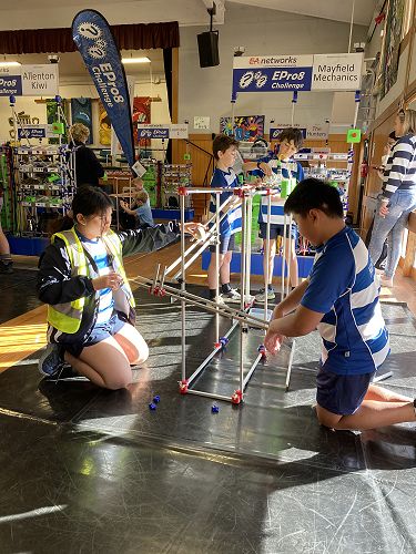Last week we had a team of Year 5/6 and a team of Year 7/8 represent our school at the Mid Canterbury EPro8 competition. The teams had a choice of four challenges to work on, and had three hours to complete as much of the build as they could. Points are earned by completing stages of the build and having it checked off by Kelvin the Event Manager.