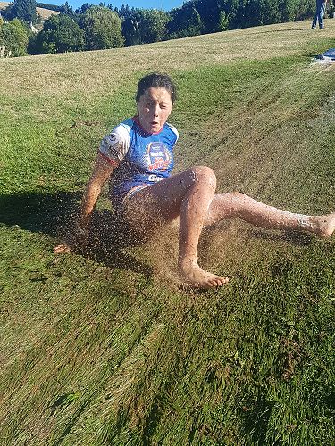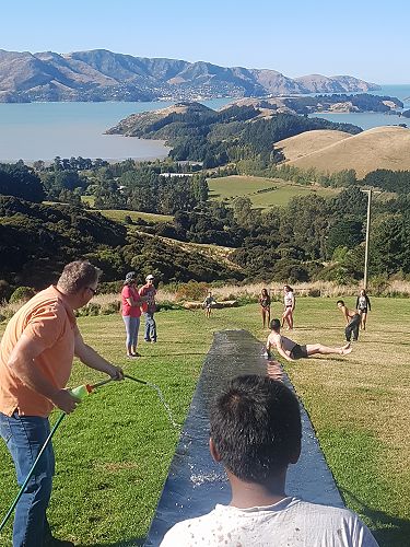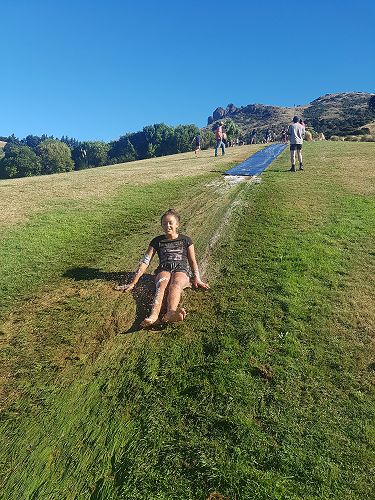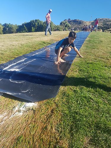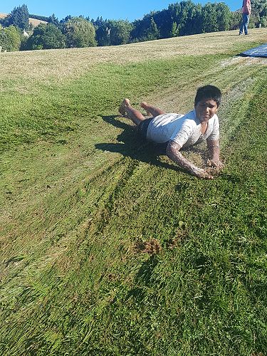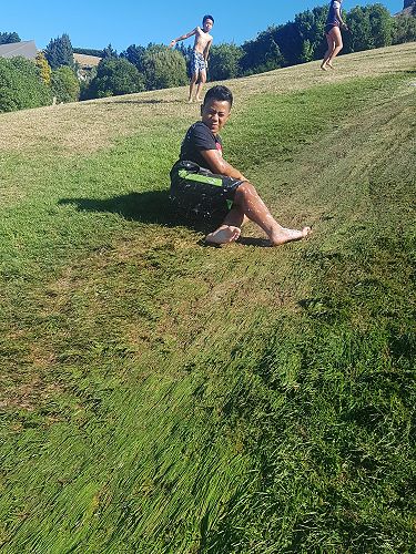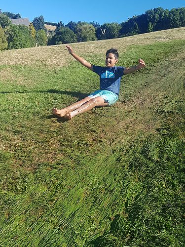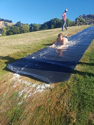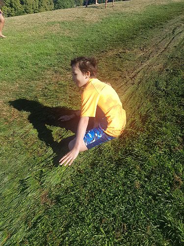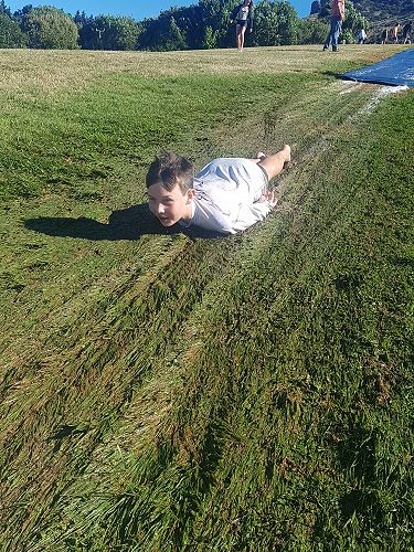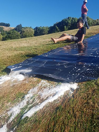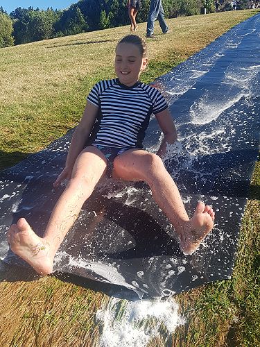 " The waterslide was real slippery and fast. Lot's of people were trying to touch the hay bales at the end!" - Chris