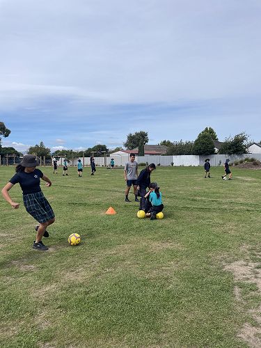 These sessions have been running at lunchtimes on the field and are funded for girls only. The reason for this is to promote girls playing football for the upcoming FIFA Women's World Cup which is being hosted in New Zealand and Australia this year.