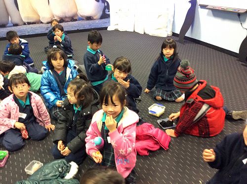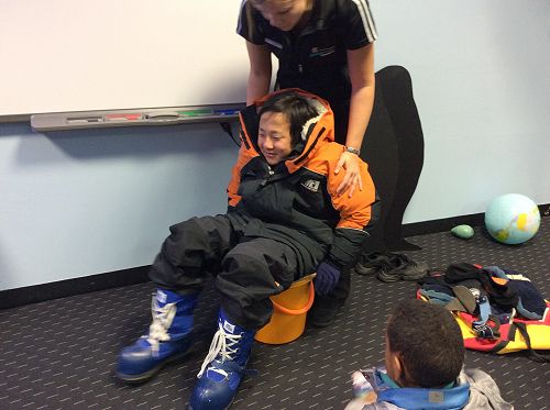 After we arrived at the Antarctic Centre the students spent time with Lucy in the classroom and found out interesting facts about living in the Antarctic. Jae Young modelled the clothes required to stay warm in the Antarctic, much to the amusement of the other students. The class then split into two groups to explore the Antarctic Centre. The Senior Class visited the Storm Room and then moved to the Penguin section. The Junior children went to the Penguins and then the Storm room. Both groups also visited the display hall and to complete their visit they viewed the amazing film show of life in the Antarctic.