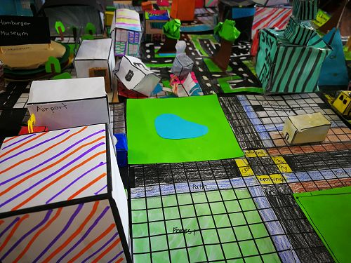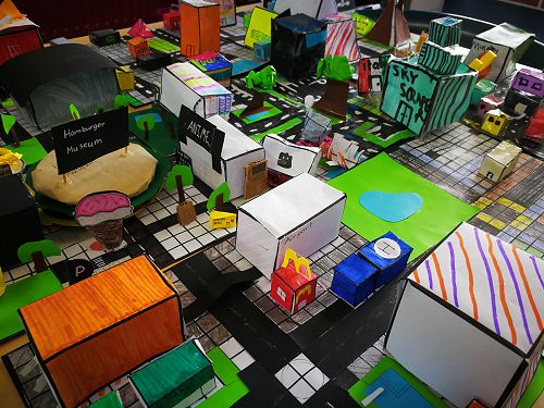 Students in Years 7/8 have spent two weeks designing and creating their own city. Working in groups of 2 - 4, students were responsible for a different city district; districts included the CBD, suburbs, industrial park, public works, park district, tourist attractions and entertainment centres.