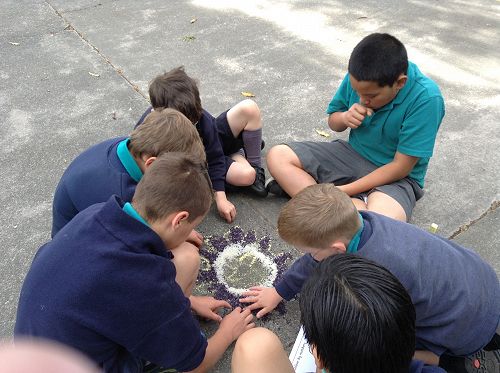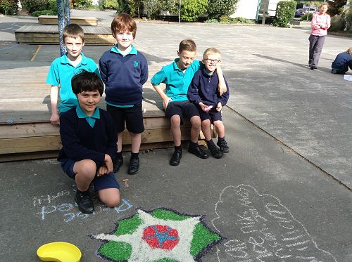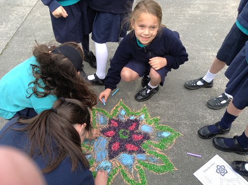 Diwali is the Hindu festival of light. People make Rangoli patterns to welcome the Goddess of Prosperity- Lakshmi into their homes. Room 18 and Room 5 drew the patterns onto the court and then filled them with coloured rice. It was a good exercise in collaboration!