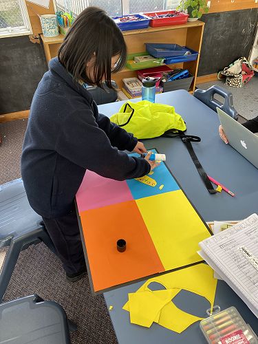 Mia. L Rm 18: The Colour wheel was my favourite experiment. I like it because it was colourful. We put 3 different colours on a bit of fabric and then dropped methylated spirits onto the colours. The colours spread around and made a big multicoloured wheel!