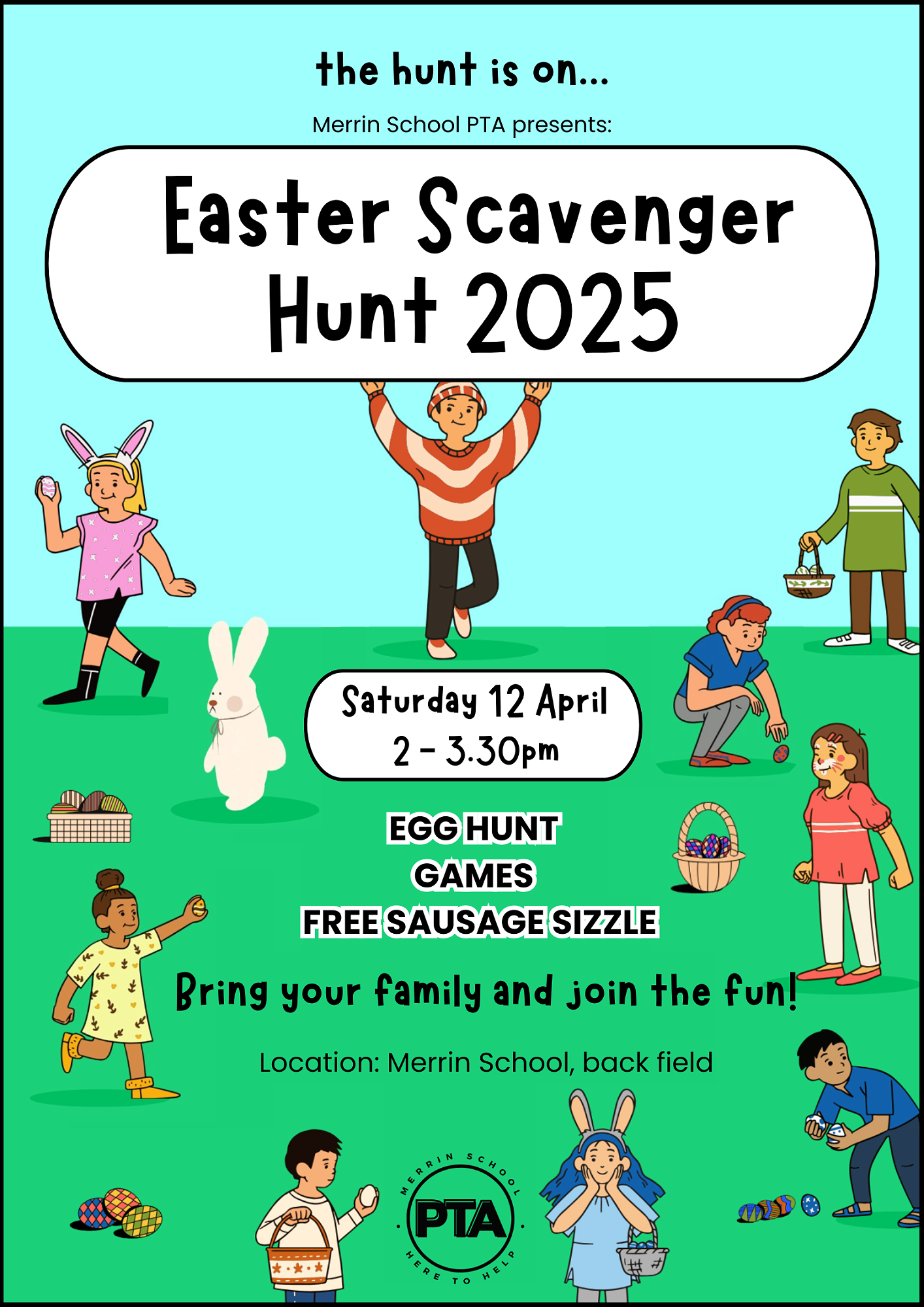 We're also super excited to announce this years EASTER SCAVENGER HUNT! Come on down to school on Saturday 12 April, from 2pm.