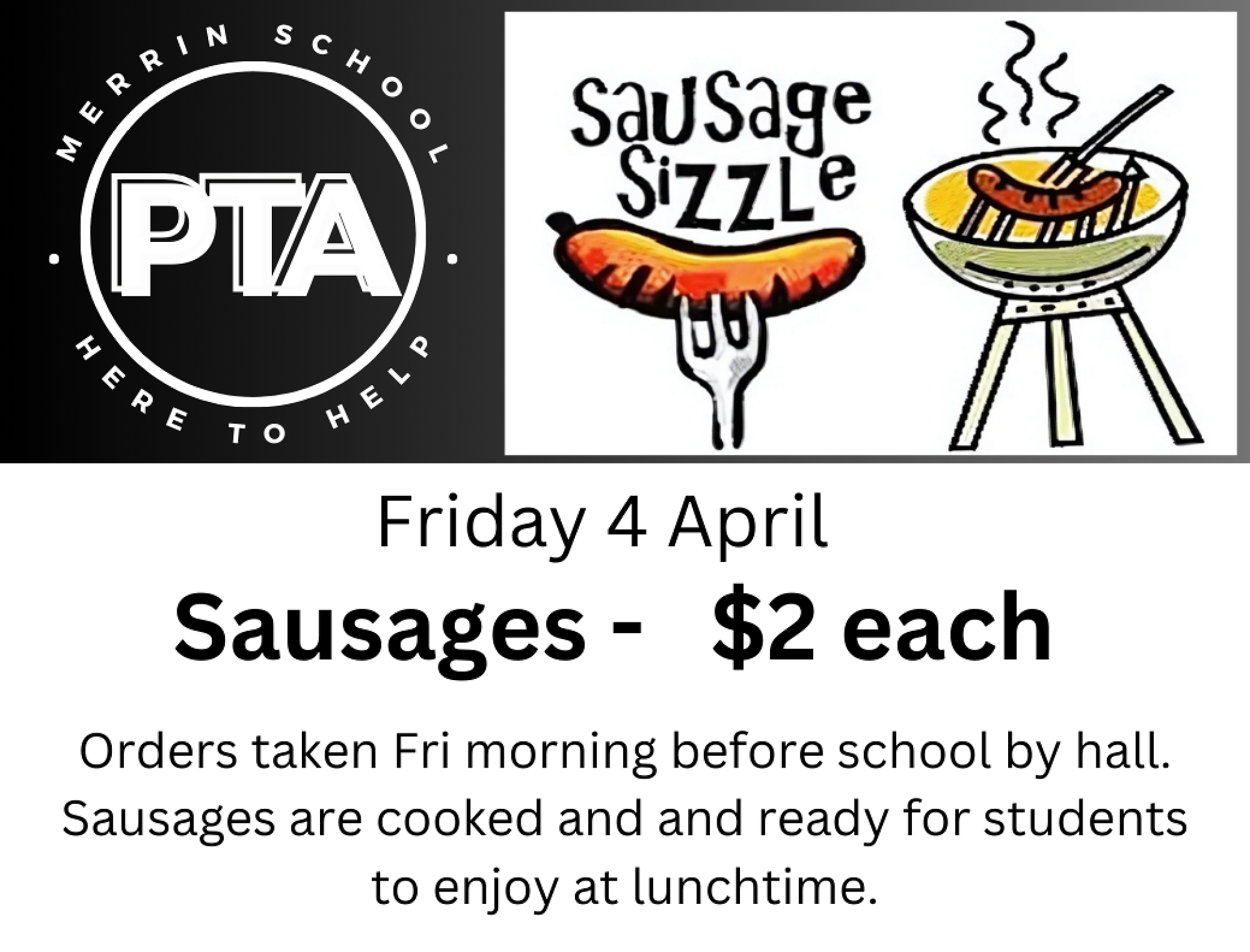 Don't forget, this Friday (4th April) we have our Sausage Sizzle!