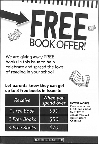 Free Book offer when you spend over $30. Scholastic Book Club orders are now only via Scholastic’s Linked Online Ordering and Payment (LOOP).