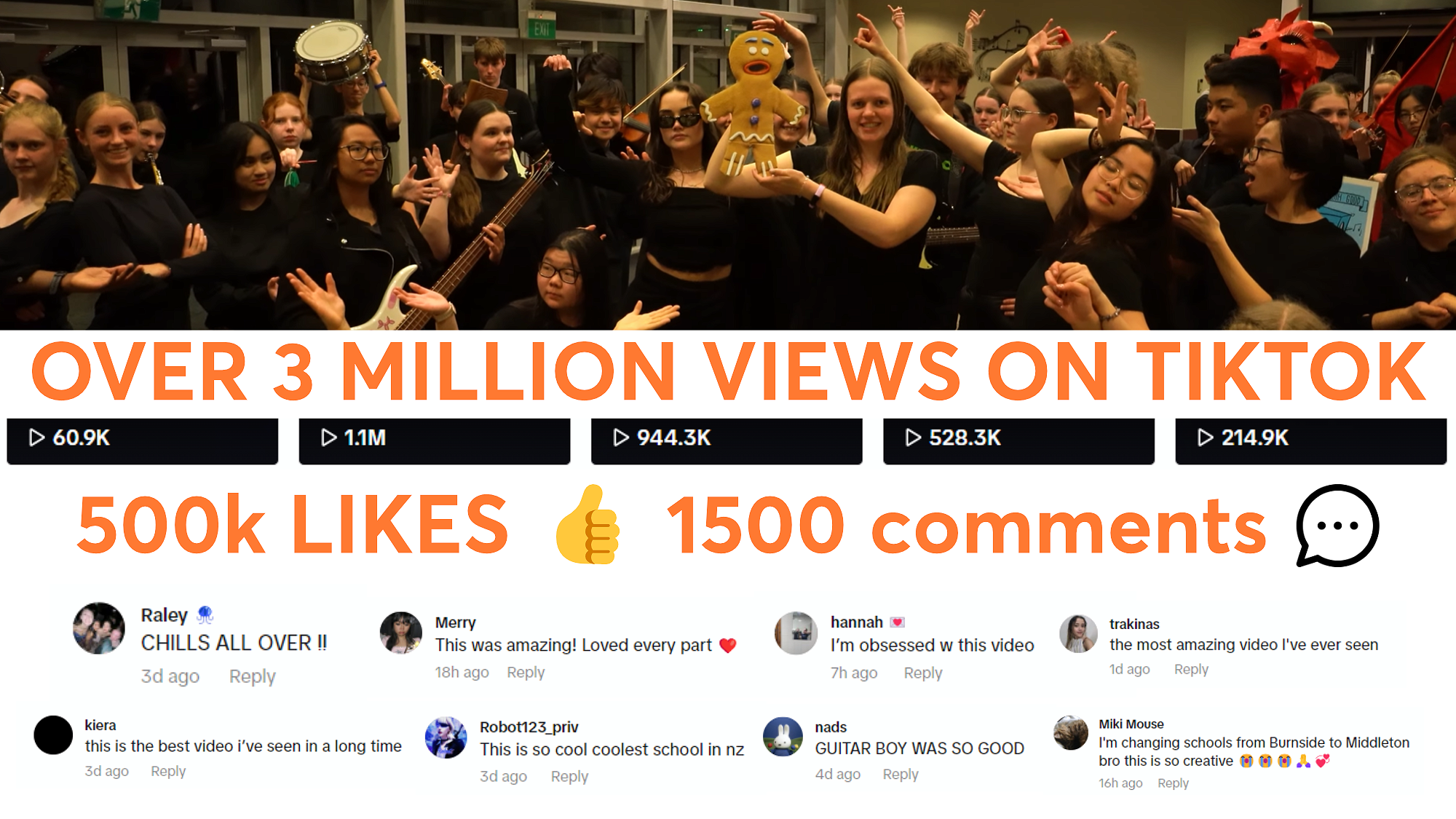 That video has gone worldwide over Labour Weekend, with a total of over three million views on TikTok, with 500k likes and hundreds of supportive and encouraging comments for our talented Tamariki.