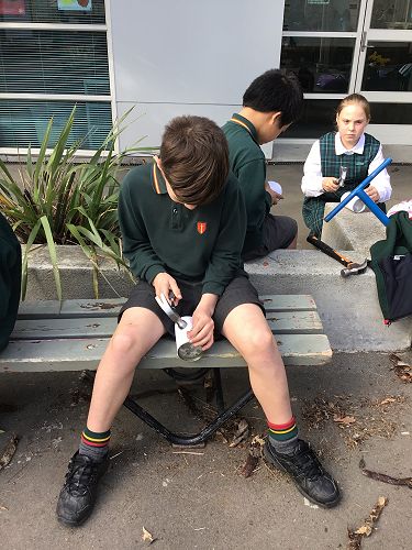 Here are some photos of Room 12 creating tin can lanterns for Matariki. We designed a pattern using dots which we transferred to a tin can. The can was filled with frozen water so we could hammer a nail through to create the pattern. Then the cans were spray painted and we added an LED light.