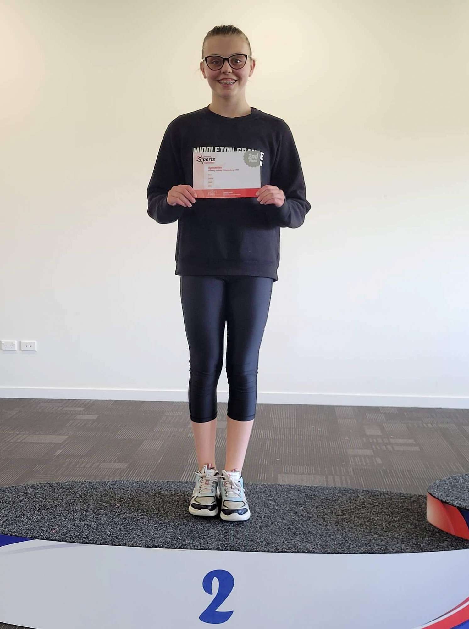 Payton Hutchinson recently competed at the Canterbury School Gymnastics Competition representing Middleton Grange School. She placed overall 8th our of 18 and even managed to get her first ever podium placing - 2nd on the balance beam. Well done Payton.