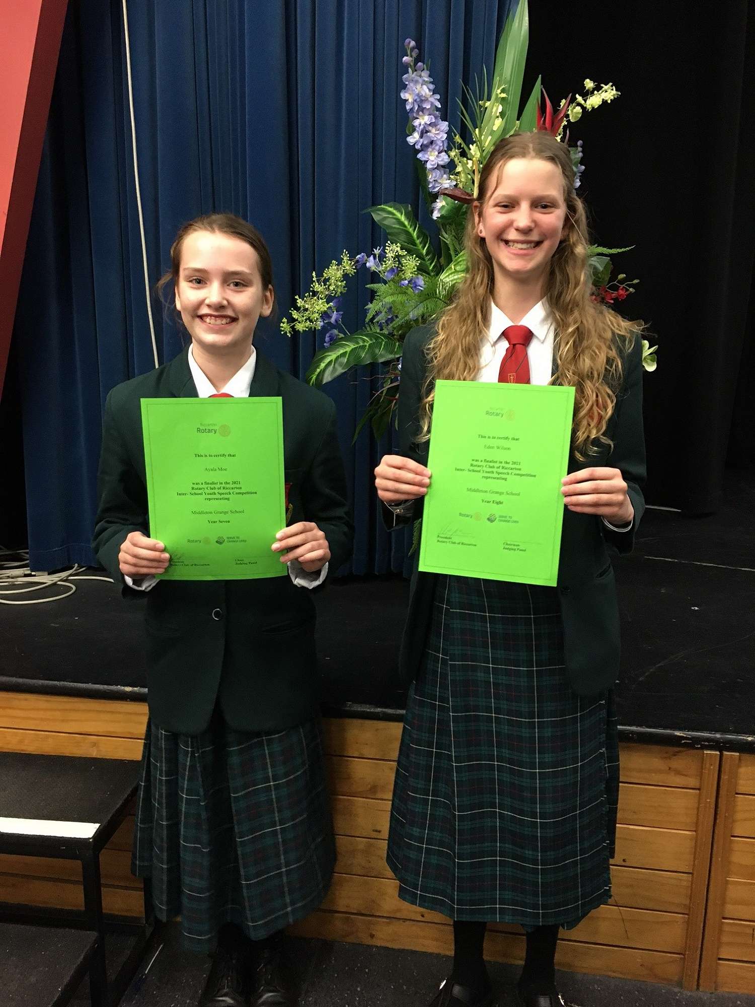 On Tuesday 29 June, Ayala Moe, Y7 and Eden Wilson, Y8 spoke incredibly well at the Rotary Speech Finals representing Middleton Grange School.