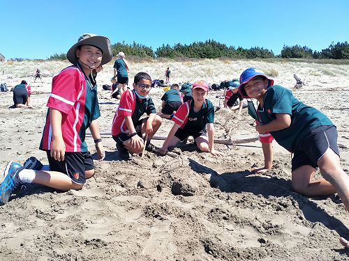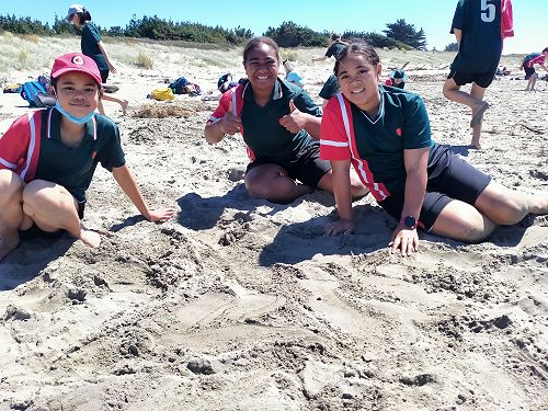 Thursday the 17th of February saw the Year 7 cohort head off to Spencer Park for our annual Activity Day. Our morning was filled with a range of team building games and challenges. Peer support leaders and teachers challenged students to work together in activities such as Space Debris, Electric Fence, and Team Action Charades. The afternoon involved a sand sculpture competition where students were tasked with creating the best sculpture inspired by the theme of ‘Ocean’. We returned to school with many fond memories and a greater sense of Tūrangawaewae (belonging). Thank you to everyone who made this event possible, it was a great start to our year together.