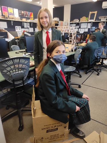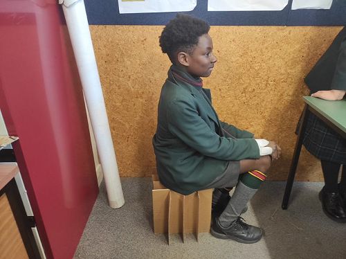 ...structural technology students were challenged to build a popsicle stick bridge (Year 7) or tower bridge (Year 8) that can withstand a load of about 5kg. Most of their bridges stood the test, some even supporting 8kgs. They also made a chair/stool out of cardboard that a student (or even a teacher) can sit on. To make it more challenging for the Year 8s, they were not allowed to use any glue for their furniture. They all had fun while learning key skills and knowledge such as writing technology briefs, developing conceptual designs, and how structural integrity can be improved on certain structures.