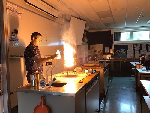 ...had an invitation to participate in some Chemistry with Mr Matt Vannoort in the high school labs where they learnt about the ‘travelling flame trick’ and how iron and aluminum react with fire and water.