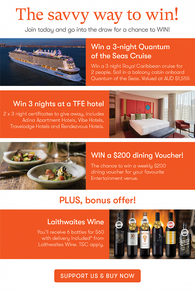 If you purchase a Membership between 3pm Wednesday, 4th August and 11.59pm Wednesday, 1st September you automatically get a BONUS eGift Card, 1 extra month free when you purchase a Single City Membership go into the draw to WIN: A 3-night Quantum of the Seas Cruise, One of 2 x TFE Hotels 3-night vouchers and a $200 dining voucher at your favourite Entertainment Venue.