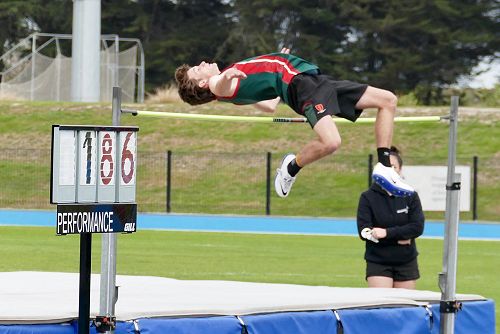 Levi Ferguson winning the Senior Boys Long Jump and coming 2nd in the High Jump,