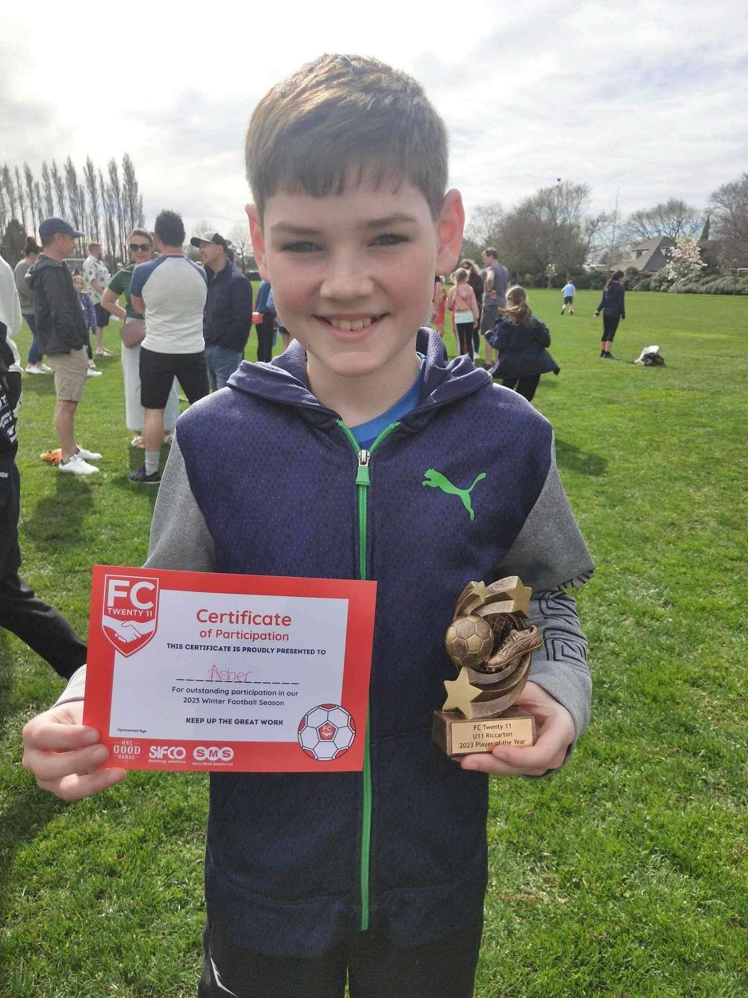 Congratulations to Asher Wallis, Year 6 who was awarded 2023 Player of the Year for FC Twenty 11's U11 Riccarton football team. Way to go Asher.