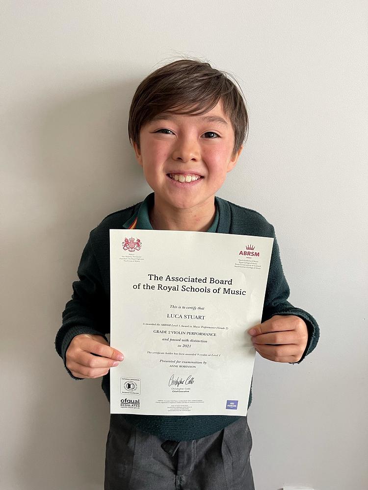 Luca Stuart recently achieved a Distinction for Grade 2 Violin with Royal Academy of Music. Well done Luca.