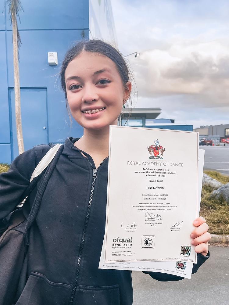 Tavé Stuart recently received Distinction from RAD (Royal Academy of Dance) in Advanced 1 (Ballet). Awesome work Tavé.