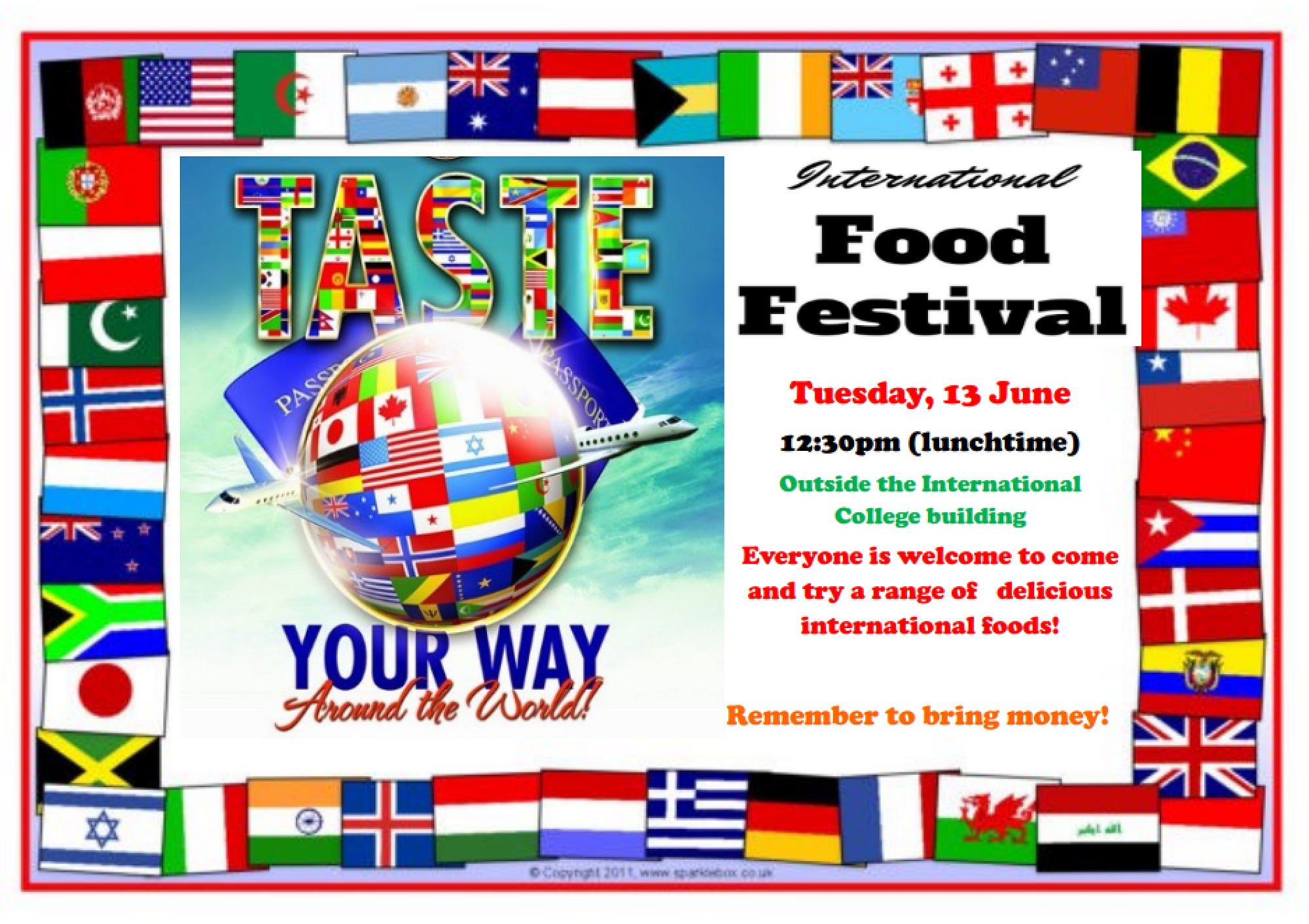 On Thursday lunchtime our International College hosted an International Food Fair with approx. 15 different food stalls offering a wide range of international foods.