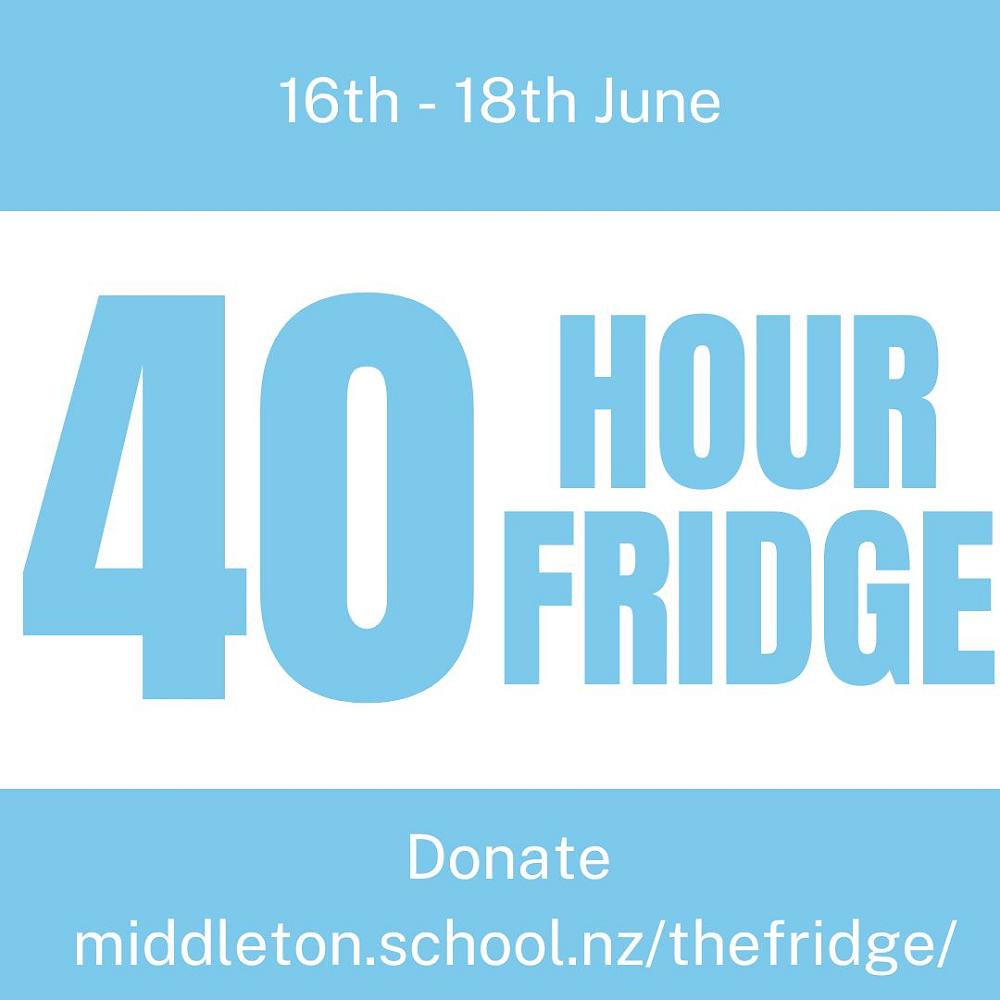 "The Fridge Radio is hosting the 40 hour Fridge where we will be live streaming for 40 hours straight as part of the 40 hour famine challenge. Please support our hosts by listening and donating through our webpage https://www.middleton.school.nz/thefridge/ this weekend. Also check out the fridge Instagram @thefridgeradio for updates and promotions."