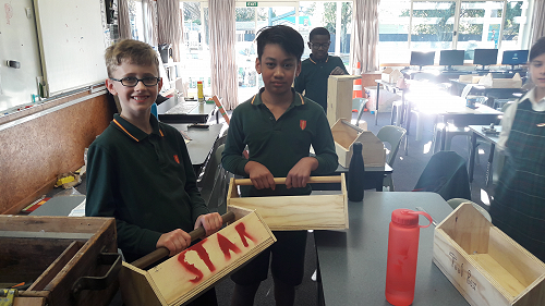 Year 6 students have been busy recently making toolboxes which they have decorated with poker work or using a stencil and spray paint and they have also been cooking iced gingerbread waka in groups of four.