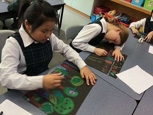 The Year 5/6 Team have been looking at the art work of Heather Galler, and using it as inspiration for their own piece of work using black paper and oil pastels. Here are some from Room 13.