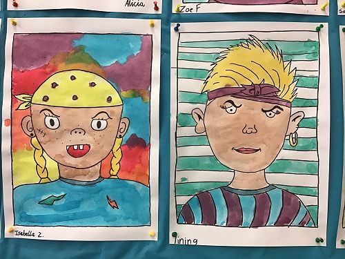 Room 13 had fun creating cartoon pirates using vivid and dye. We looked at different face shapes, nose shapes, ears, eyes and mouths. We added pirate eye patches, and bandanas, and then dyed them. We were very pleased with the results.