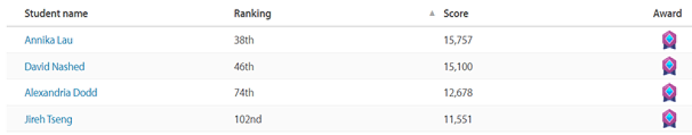 Well done to everyone who took part the in EPLC. We acknowledge all the participants for their hard work. The students who earned an Elite Award answered 10,000+ questions.