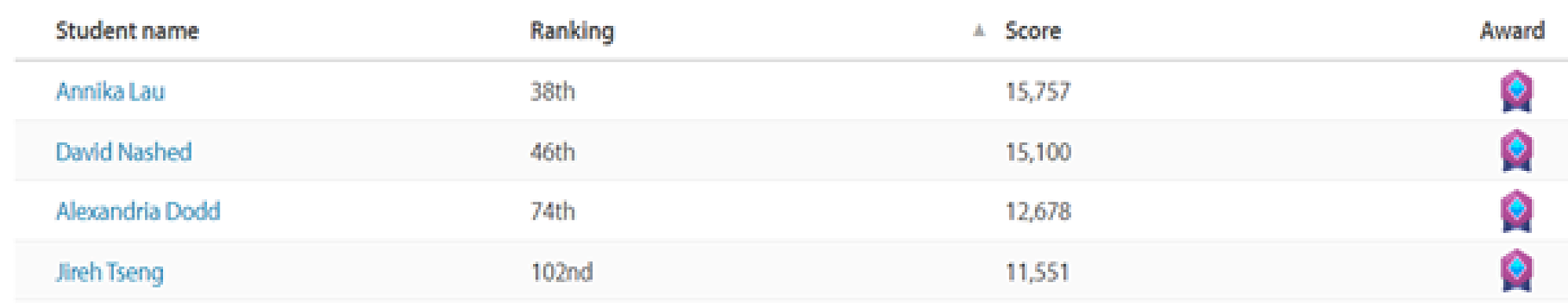 - 3rd in New Zealand for the 1001-2500 students category out of 64 schools
