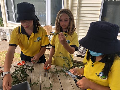 The tamariki worked with herbs this week at Gardening Club. We planted coriander seeds with Mrs Sommers and learnt how to make rosemary cuttings with our parent helper Charlotte. The children learnt to peel off a small branch off the rosemary stem to create a 'heel', or to make a cutting near a leaf 'node'. Our hands all ended up smelling amazing.
