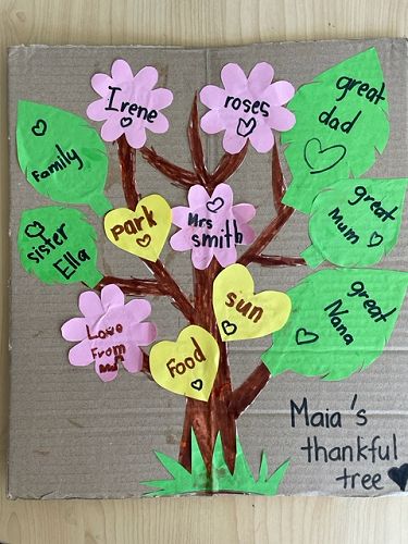 One of the things we've been learning about in the Resilience Project is practising gratitude. Gratitude means thinking about and being thankful for what we have. Practising gratitude can help us persevere during challenging times. This week one of Room 16's Seesaw activities was to make a Gratitude tree. These Gratitude trees were made by Sissi, Dasha, Irene, Olivia, Maia and Stefan.