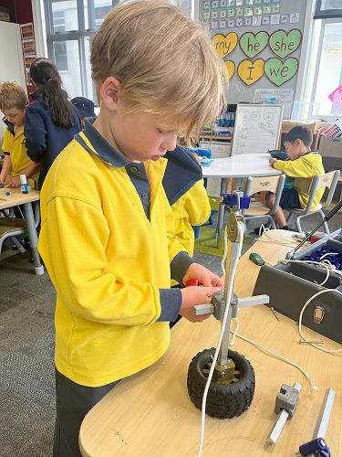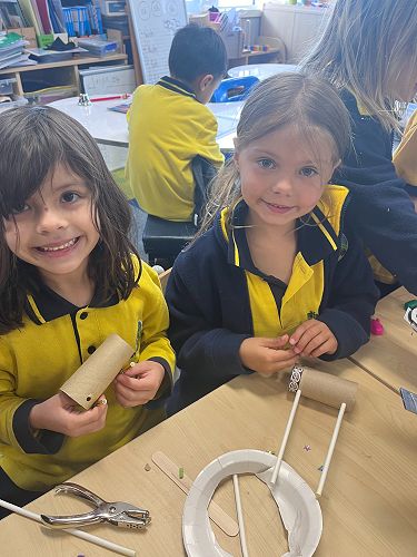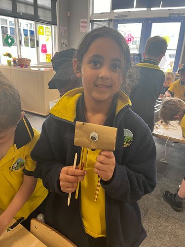 Additionally, the students channeled their inner inventors, using recycled materials to construct imaginative inventions. Children experimented with different types of joins; including flange, hinge, and lashing, as they joined recyclable materials together to create their inventions.