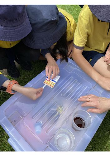 We also learnt how to test the pH (Potential Hydrogen) of the water, pH is a measurement of how acidic or how basic (alkaline) a liquid (water) is. A healthy bush stream should have a pH very close to 7, but sea water is closer to 8. Luckily, our water sample pH level is 7. We also managed to measure the sample of Coca Cola and white vinegar. Coca Cola was 3 pH and the white vinegar was 2 pH. Something else we did is measure the clarity of the stream. Just like plants on land, plants underwater need sunlight for growth. In streams, the amount of light that reaches underwater plants depends on how clear the water is.