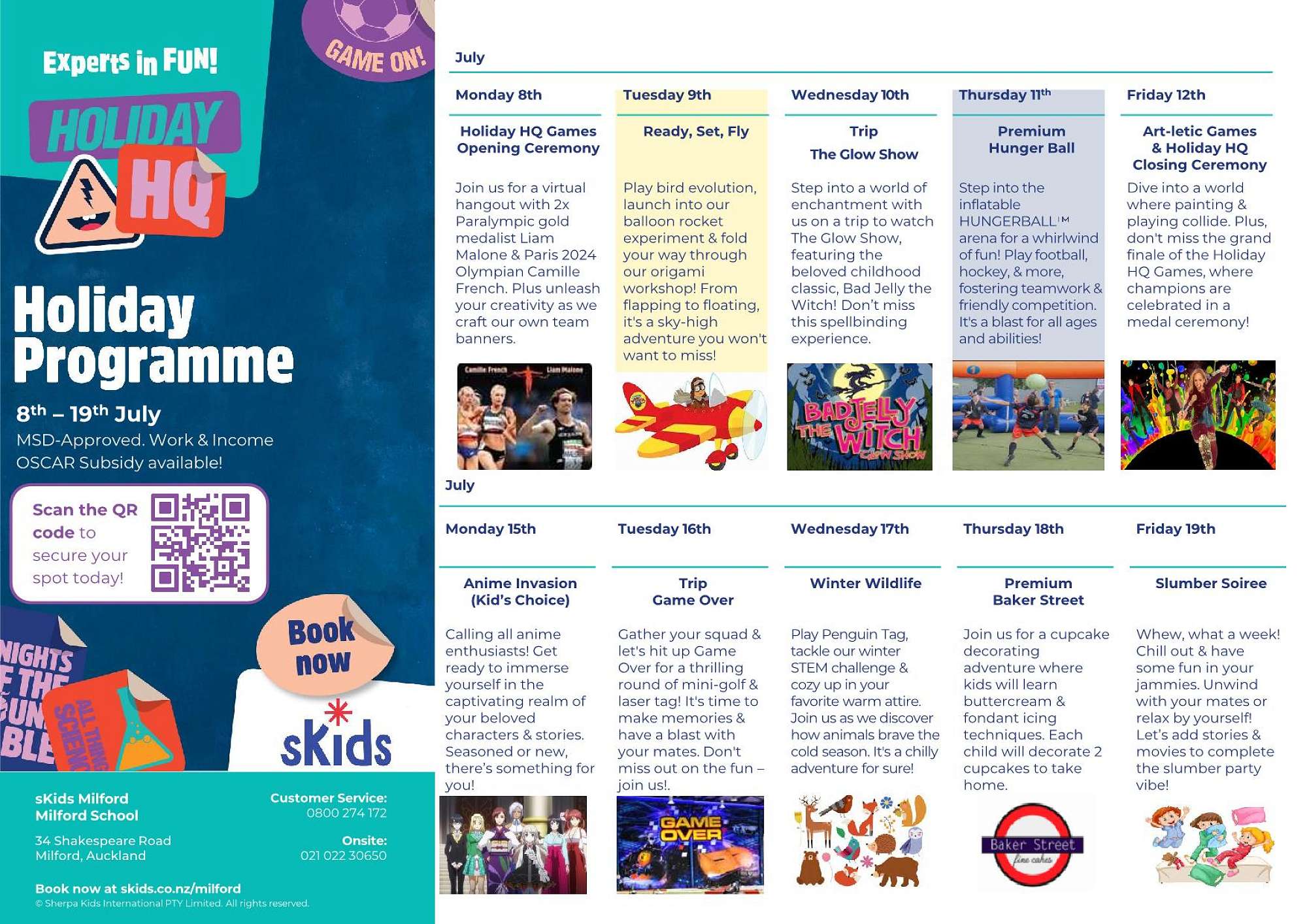 Need a safe and fun holiday programme for the kids over the school holidays? Our before and after school care team, SKIDS, are running their holiday programme filled with fun activities and trips.