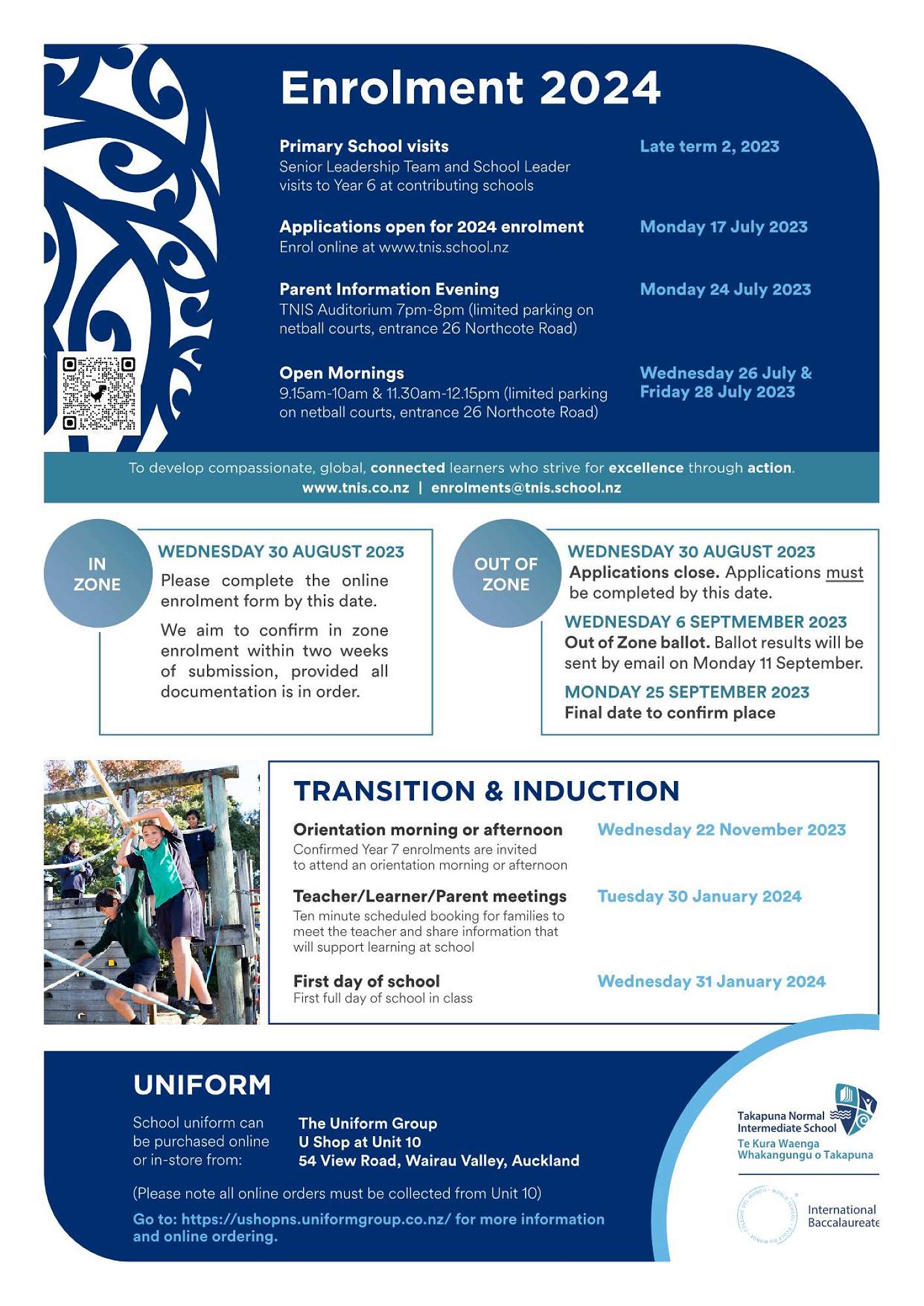 Kia ora Parents of Year 6 Learners, Our enrolment application form is online, and we are currently taking 2024 applications for Year 7 learners living in our school zone. Out of zone applications close on Wednesday 30 August.