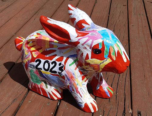 The Chinese New Year, based on the Chinese lunar calendar, was celebrated in January this year, before we started back at school. There are 12 animals in the Chinese zodiac, all associated with certain character traits, and the featured animals alternate on a yearly basis. 2023 is the Year of the Rabbit, so in Room 19 we painted our papier-mâché rabbit red.