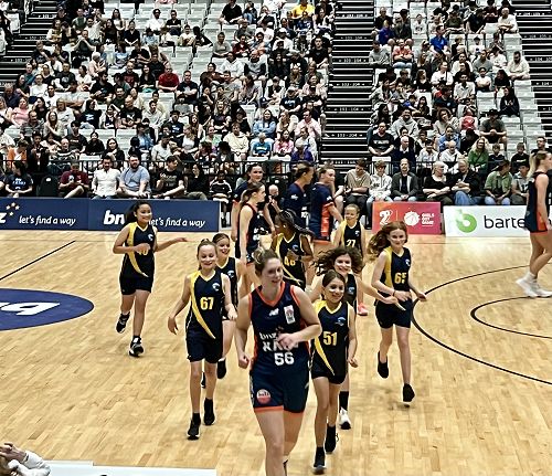 On Saturday evening, Dani Marshall, one of the 5 women who now own the BNZ Kahu women’s basketball team asked the Milford Kahu girls basketball team if they would like to escort their players onto the court when they played the Mainland Pouakai at the EventFinda Stadium.
