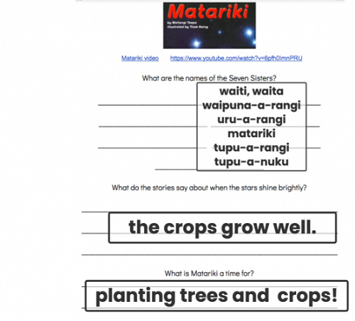 This year, New Zealand has been celebrating Matariki since 13 July. At school, we celebrated Matariki in some different ways like reading books about it, discussing why it is important to us as people who live in Aotearoa, things people do to celebrate and some Matariki art. Here are some examples of things we did at MNS.