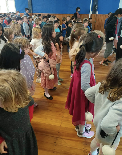 Māori Language week was another example of tamariki working together as they went around activities doing haka, rakau, taonga pūoro (musical instruments made from nature), learning Māori legends and Māori games.