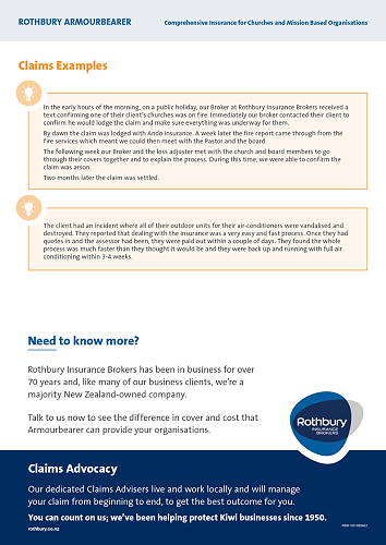 Rothbury has a specific insurance scheme, Amourbearer, designed for Churches and Mission Organisations based in NZ, they are also a broker for all your domestic needs, including Cybersecurity.